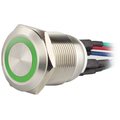 Bouton poussoir en acier inoxydable équipé d'un voyant blanc, idéal pour une utilisation dans des environnements nécessitant à la fois durabilité et esthétique.